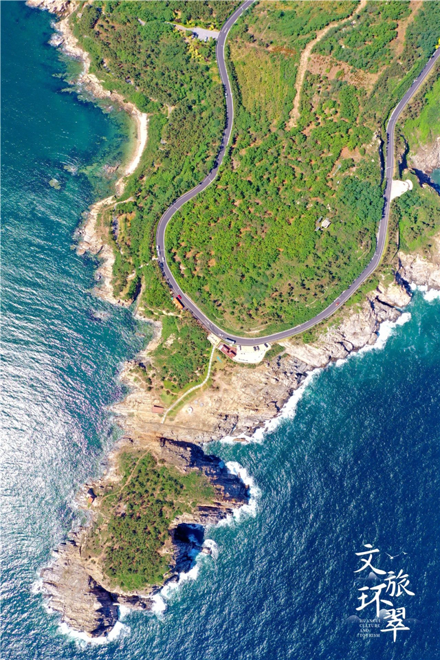 開車沿著環海路走一遭,一半是山,一半是海的美景便落入眼里。山海遼闊,鳥鳴陣陣,沿路還有各處觀景平臺,讓你擁有絕交的觀景效果。