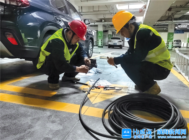 10月12日下午,在高新區一小區地下停車場,中國鐵塔股份有限公司威海市分公司工作人員正在安裝5G室內分布系統?!拔覀兘Y合每個地下停車場結構情況的不同,采取傳統天饋系統、最新廣角漏纜技術等多種建設模式,按場景推動5G室內分布系統建設,多措并舉精準覆蓋,優化網絡信息服務?!惫ぷ魅藛T介紹。