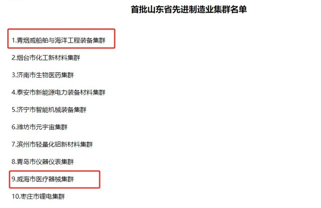 威海2個集群入圍首批山東省先進制造業集群名單
