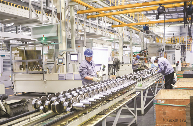 在天潤工業技術股份有限公司曲軸智能制造事業部“黑燈工廠”項目現場,改造后的7條生產線均已具備生產能力,產品不良率下降50%、能耗降低30%。