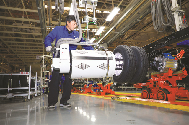 在濰柴新能源商用車有限公司生產車間,工作人員正在加緊生產。