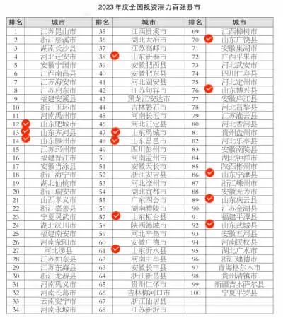 ??????2023年度全國投資潛力百強縣市榜單中,山東共有13地入選。