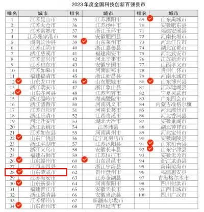 ??????2023年度全國科技創(chuàng)新百強縣市榜單中,山東共有14地入選,其中威海榮成市上榜。