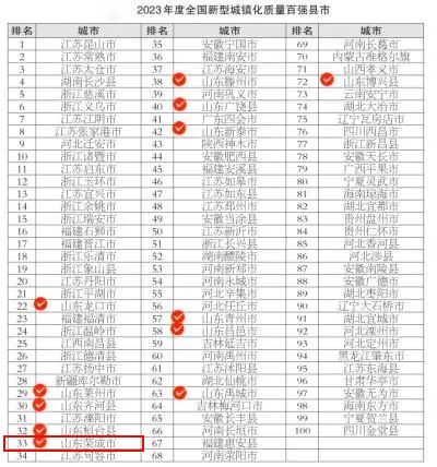 ??????2023年度全國新型城鎮(zhèn)化質量百強縣市榜單中,山東共有12地入選,其中威海榮成市上榜。