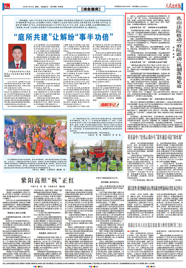 近日,《人民法院報》以《乳山法院推動“府院聯動”機制落地見效》為題,聚焦乳山法院充分發揮府院聯動機制優勢,為高質量發展提供有力司法保障的經驗做法,以下為報道全文: