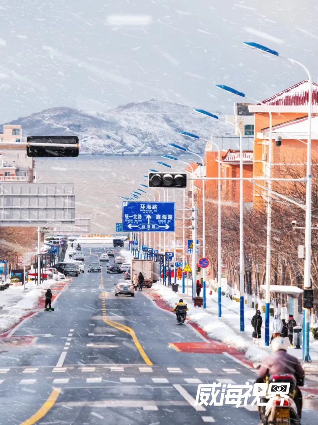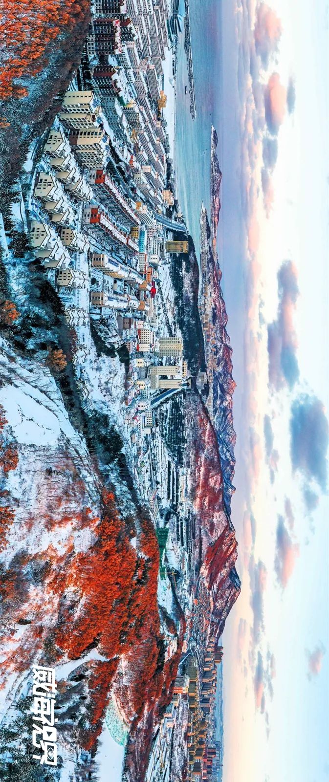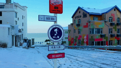 ????雪后的火炬八街,宛如走進(jìn)宮崎駿漫畫中,漫天雪花與浩瀚大海無聲交融,有一種令人沉醉的感動。