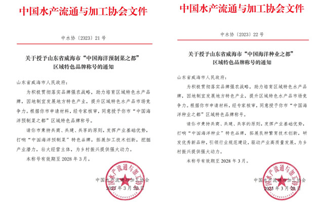 威海獲批“中國(guó)海洋預(yù)制菜之都”“中國(guó)海洋種業(yè)之都”稱號(hào)。