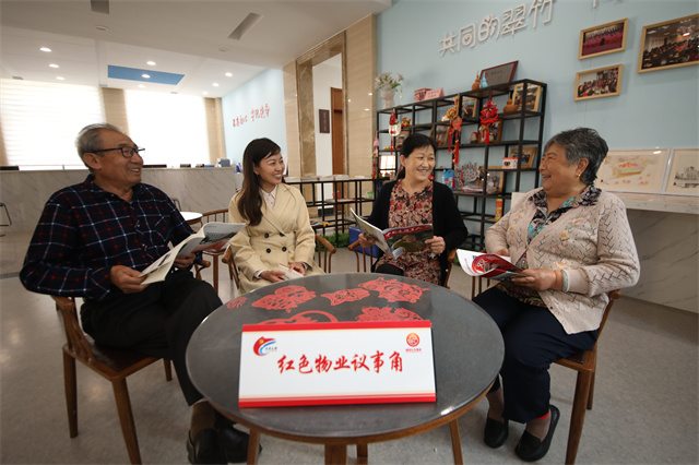 ??????環翠區竹島街道翠竹社區設立紅色物業議事角,推進社區物業黨建聯建,凝聚起社區治理強大合力。