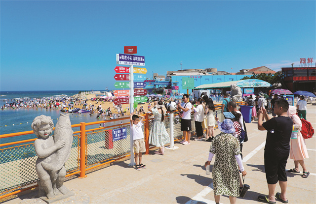 ??????今年暑期旅游高峰,眾多游客到小石島景區“打卡”,盡情享受濱海“慢生活”。
