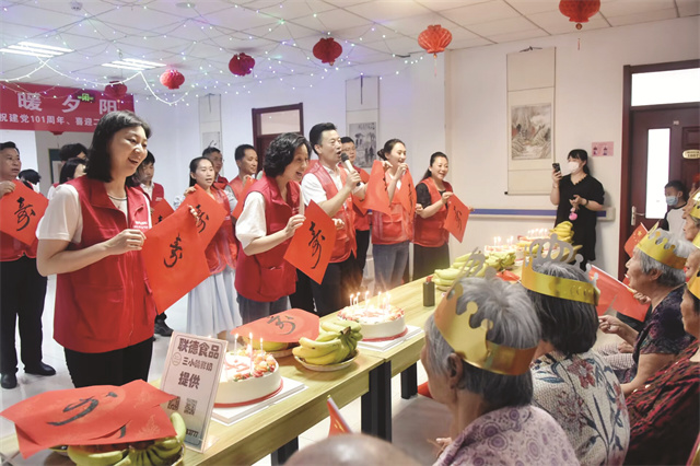 第四屆山東省道德模范呂明玉(左二)帶領(lǐng)志愿者開展“為老”志愿服務(wù)。