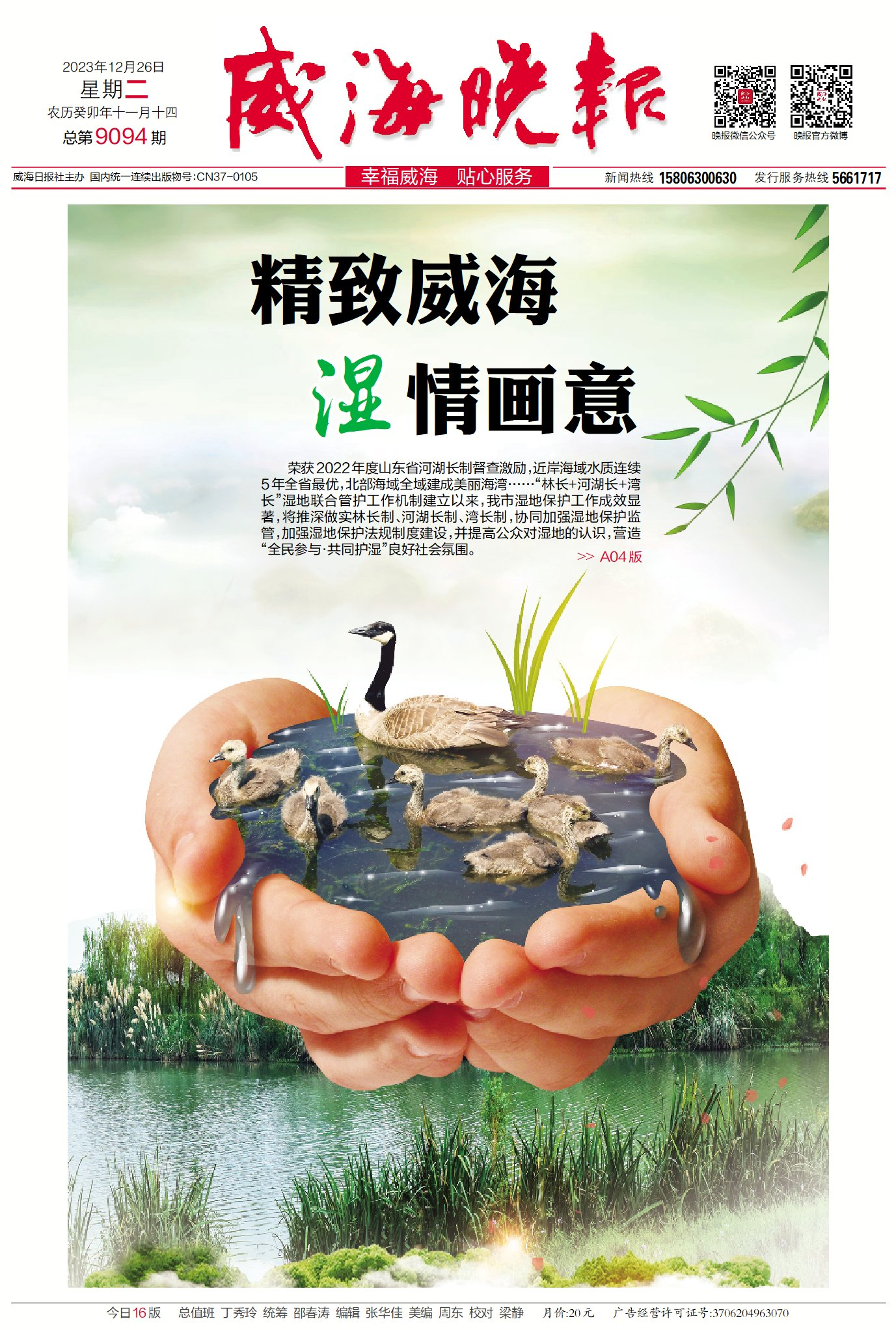??????榮獲2022年度山東省河湖長制督查激勵,近岸海域水質連續5年全省最優,北部海域全域建成美麗海灣……“林長+河湖長+灣長”濕地聯合管護工作機制建立以來,我市濕地保護工作成效顯著,將推深做實林長制、河湖長制、灣長制,協同加強濕地保護監 管,加強濕地保護法規制度建設,并提高公眾對濕地的認識,營造“全民參與·共同護濕”良好社會氛圍。