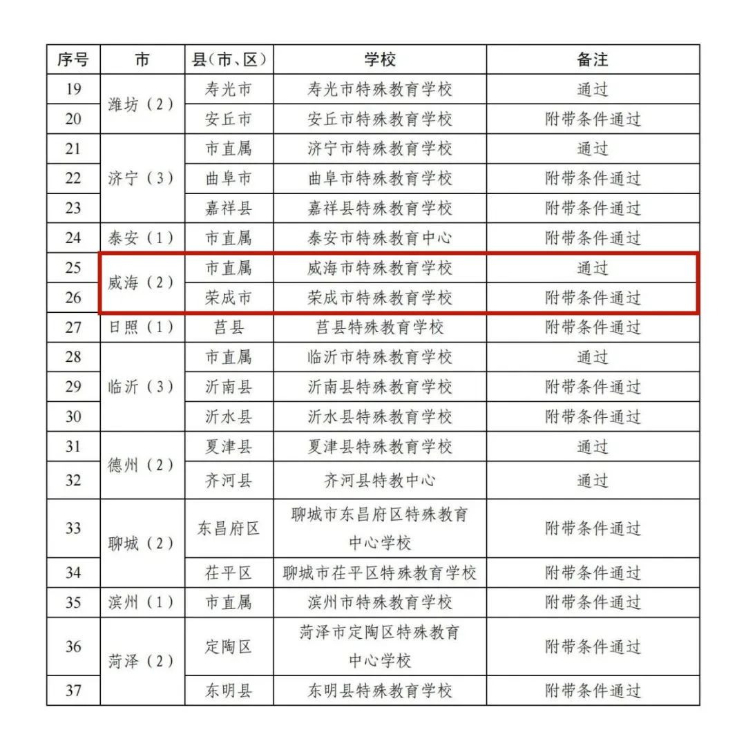 ??????日前,山東省教育廳發布《關于公布首批特殊教育學校辦學質量達標學校名單的通知》,威海2所學校入選。威海市特殊教育學校、榮成市特殊教育學校(含附帶條件通過)通過達標驗收工作,被認定為首批特殊教育學校辦學質量達標學校。