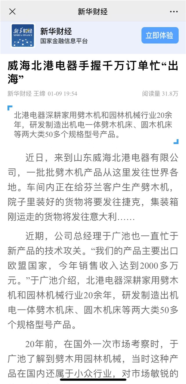 ??????近日,新華財經App以《威海北港電器手握千萬訂單忙“出海”》為題,聚焦威海高區“專精特新”企業。以下為報道全文: