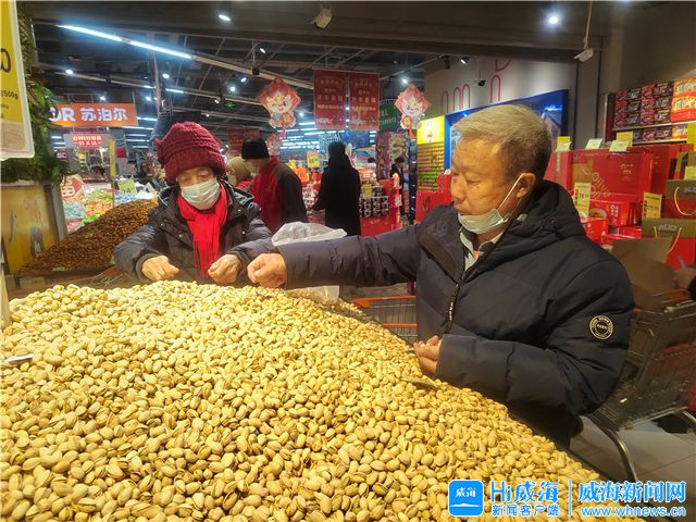 ??????這家干果店店員說,臨近春節,基本家家戶戶都要準備些干果,店鋪里除了開心果、松子等傳統干果銷量見長,一些相關的休閑小零食也賣得很不錯。(Hi威海客戶端記者 周穎 文/圖)