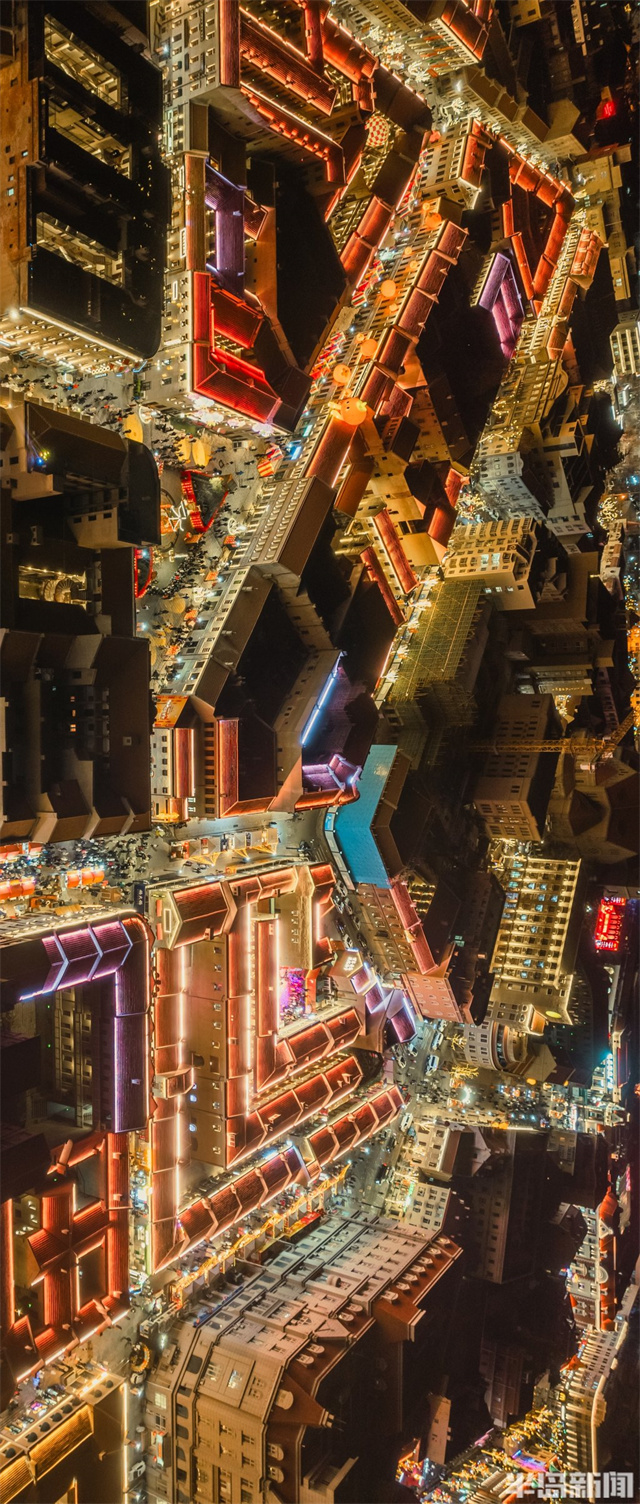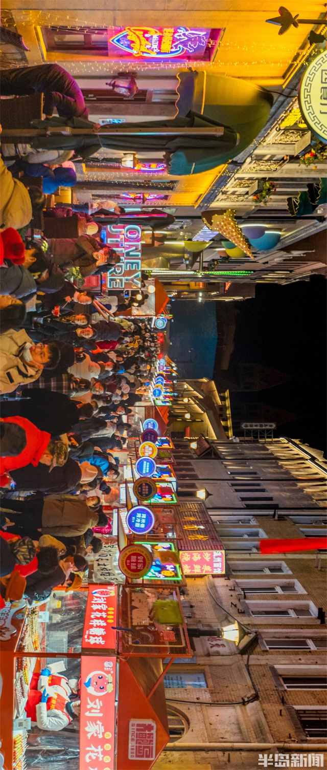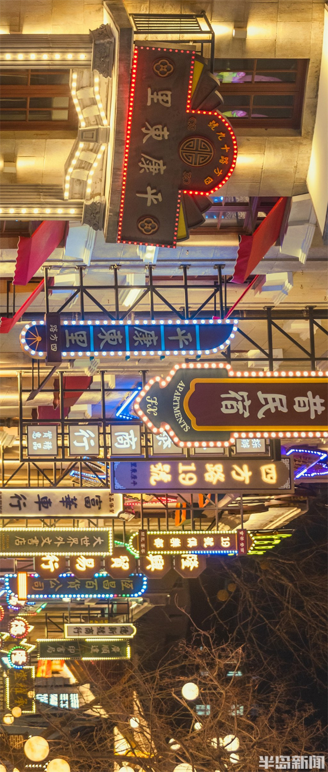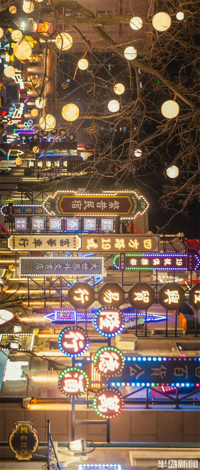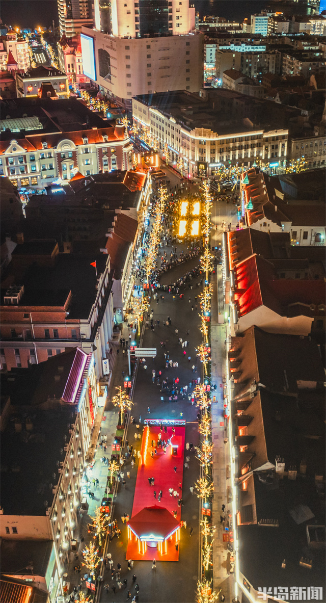 新春佳節期間,青島老城區夜晚燈火輝煌繁華醉人。