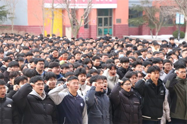 誓師會上,全體高三學生高舉右拳,莊嚴宣誓,用響徹云霄的錚錚誓言表達了對決勝的渴望,展現了決戰高考的勇氣和信心。