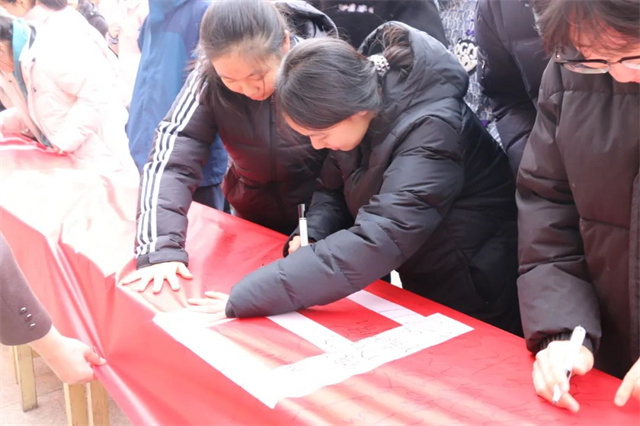 學生們還在橫幅上莊重地寫下自己的名字,用強勁有力的筆墨書寫拼搏與夢想。高三的學子們斗志昂揚,紛紛表示要牢記誓言,不忘初心,拼搏百日,全力以赴,贏在六月。(來源:威海四中)