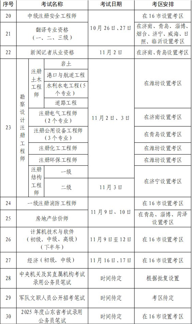 ??????2024年度山東省人事考試計劃及考區安排表