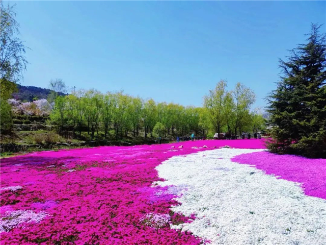 桃花、芝櫻等各類春花競相綻放