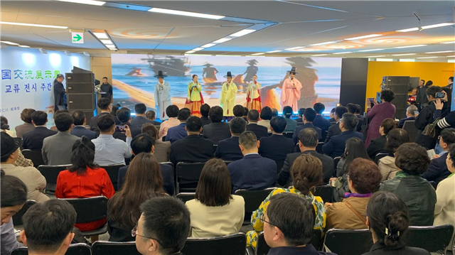 一首具有中國特色的京劇串燒《春色滿園》為“山東手造”走進(jìn)韓國交流展示周的開幕式暖場,接下來,《漁民號(hào)子》《船歌》等中韓雙方各具特色的民俗節(jié)目輪番精彩上演。