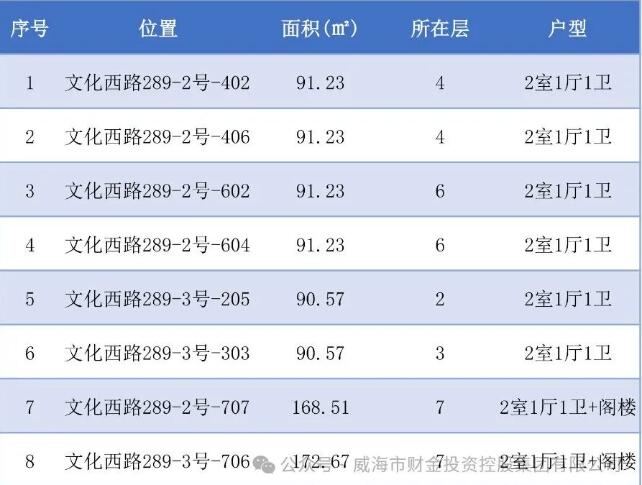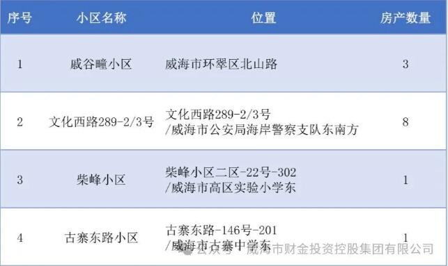 出租公告 | 威海市財金投資控股集團有限公司住宅出租(第四期)
