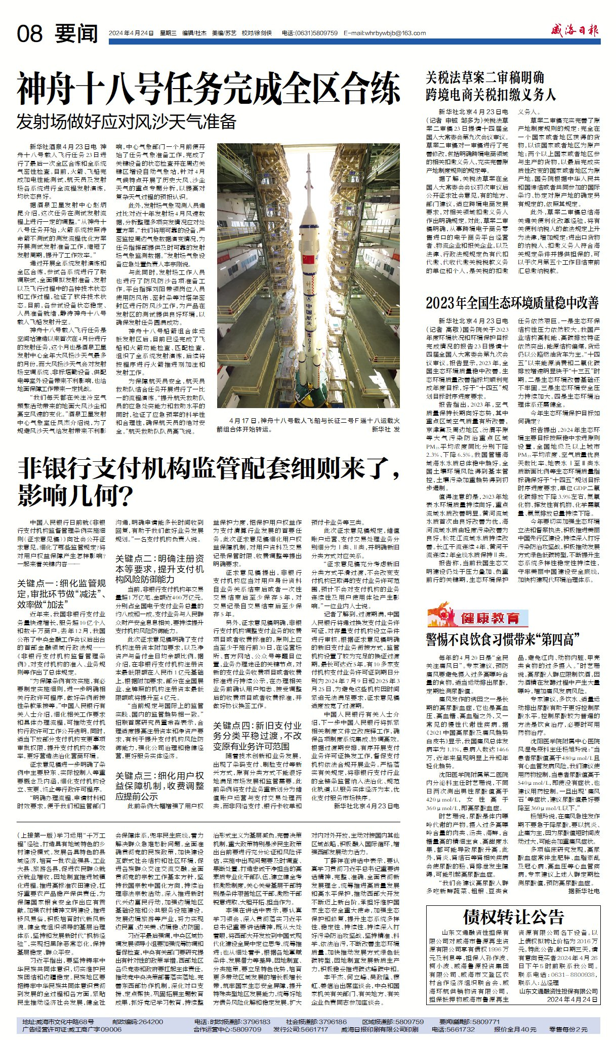 威海日?qǐng)?bào) 2024-04-24