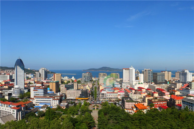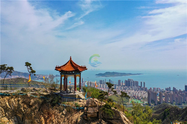 登至峰頂,東瞰大海及劉公島,西望翠綠青山,北眺全市景色盡收眼底,真可謂“煙云舒卷覽勝景,松石古淡怡遠情”。