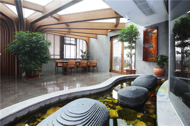 踏上抱海大酒店頂樓“登瀛臺”,行數步,至天臺處,豁然開朗,名為“松風”“竹語”“梧月”的包間并列,古樸典雅,漫步其間,如在詩畫中。