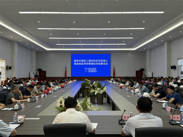 當日,與會人員來到威海灣城市綜合體項目實地觀摩,通過現(xiàn)場講解、圖片文字、實物展示、樣板等形式,全面了解建筑工程結構實體混凝土強度檢驗預控管理方面的經驗做法。