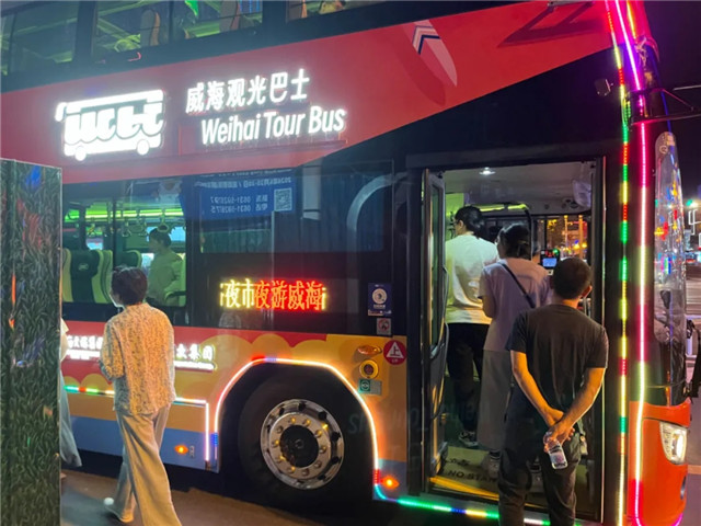 ??????雙層視野看威海,給了乘客新鮮的體驗和觀感。來自沈陽的游客黃先生和妻子晚飯后在東城路夜市閑逛,看到進站停靠的夜游觀光巴士,二人當即決定搭乘雙層巴士游威海。坐在巴士頂層最前面的座位上,夫妻倆贊不絕口,對著窗外不停地拍照、錄像。“威海美成了一幅畫,每一幀都像是大師的杰作。吹著海風,看著夜景,坐著雙層巴士看威海,這種感覺太好了。”黃先生感嘆地說。
