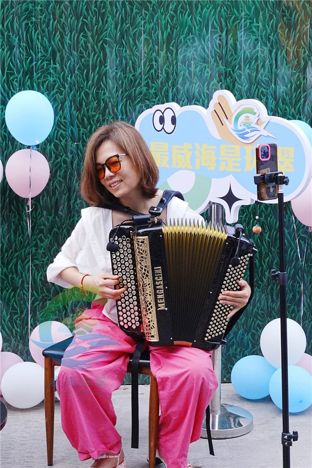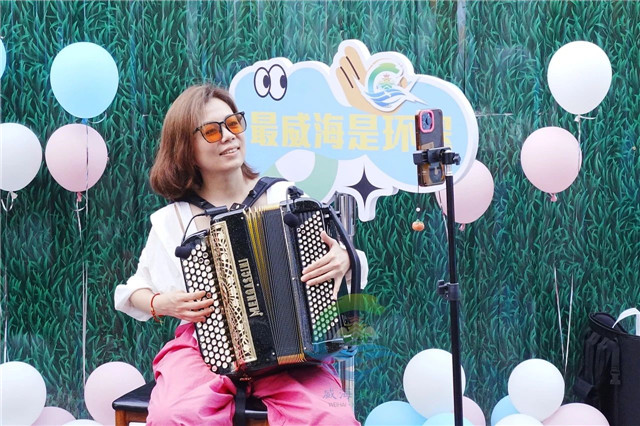 在山東大學(威海)藝術學院手風琴專業導師、碩士生導師劉怡汝的演奏下,《自由探戈》《蘇聯歌曲聯奏》《多瑙河之波》《拉德斯基進行曲》等曲目,或輕快,或激昂的節奏點燃了東城路夜市的傍晚,源源不斷地為這條老街注入夏日新活力。