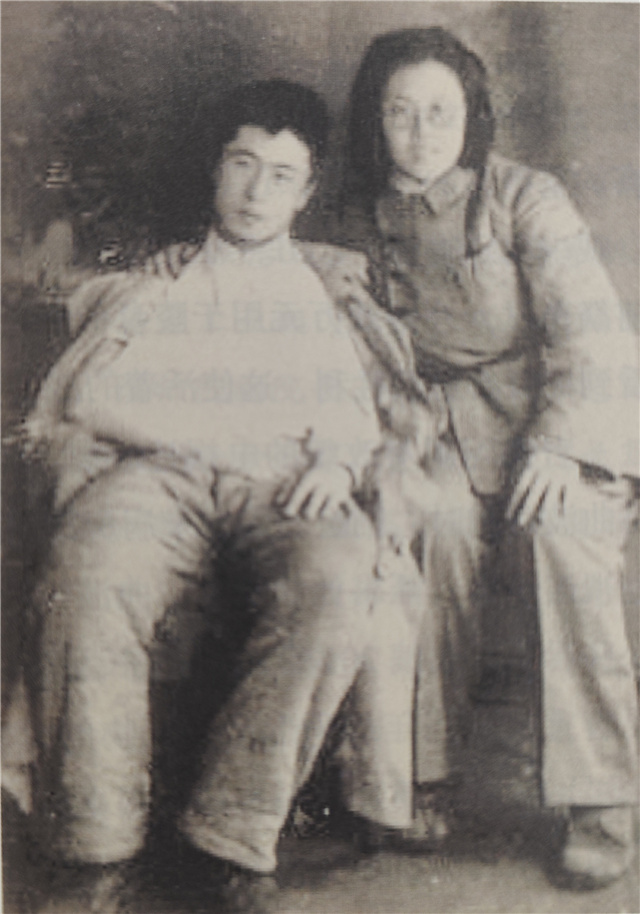 1948年4月,曲波在法庫戰役中右臂負傷后與劉波合影。