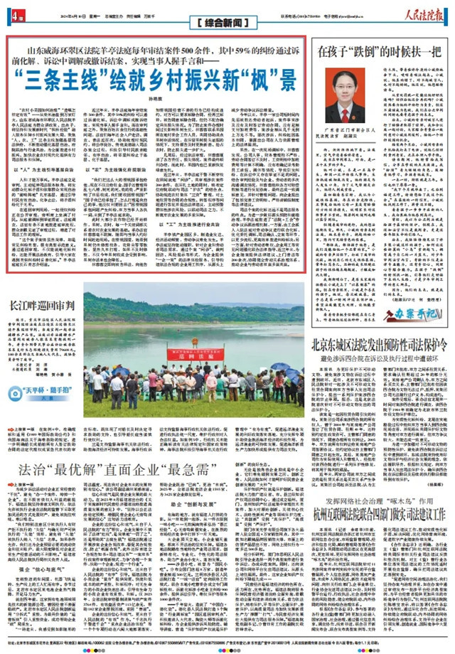 近日,《人民法院報》以《“三條主線”繪就鄉村振興新“楓”景》為題,聚焦威海環翠區法院羊亭法庭為全面推進鄉村振興提供有力司法服務和保障的經驗,以下為報道全文: