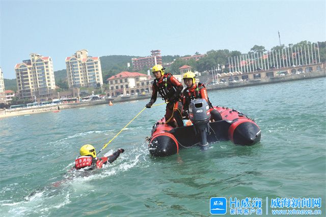Hi威海客戶端訊 無人救生艇拖曳落水人員,快速出動(dòng)沖鋒舟橡皮艇救援……7月12日上午,威海舉行水上救援應(yīng)急演練。