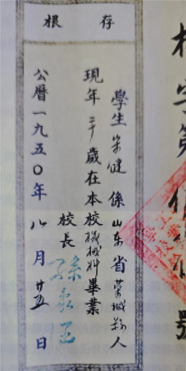 宋健院士早年的畢業證存根(榮城應為榮成)