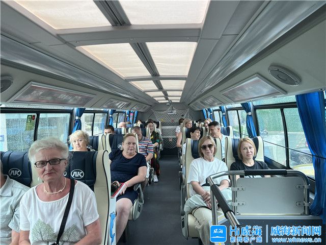 ? 當天,來自俄羅斯的40余名游客,乘坐雙層觀光巴士,沿千里山海自駕旅游公路欣賞威海美景。