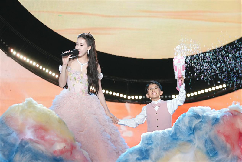 海來阿木領銜表演,連唱兩首代表作品,還與“老朋友”宋小睿共同挑戰月亮歌曲,讓現場觀眾大呼過癮。弦子與兒子暖暖美萌合作,演唱代表作品《天空之外》。