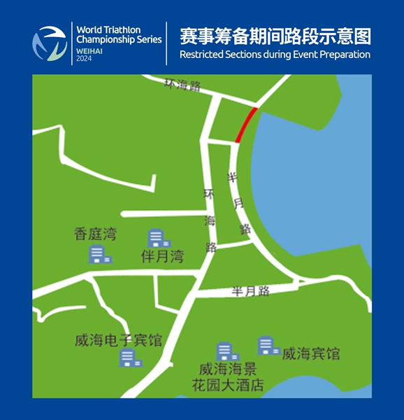 (一)賽事籌備期間:1.管制時(shí)間:9月23日7:00至9月26日全天。2.管制路段:環(huán)翠區(qū)半月灣半月路部分路段。具體路線示意圖: