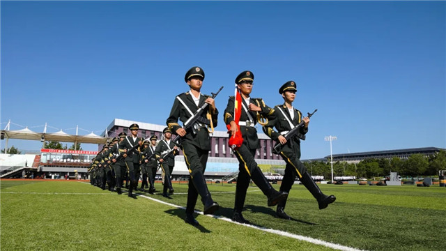 五星紅旗冉冉升起,師生們滿懷豪情共唱國(guó)歌,嘹亮的歌聲響徹校園。隨后,軍事訓(xùn)練考核正式開(kāi)始。身著迷彩服的新生們跟隨教官指令,行軍、臥倒、翻滾、沖鋒……身手利落,目光堅(jiān)毅;方隊(duì)成員們邁著整齊劃一的步伐,齊步、正步、立定……身姿挺拔,步伐穩(wěn)健。之后,全場(chǎng)齊唱《強(qiáng)軍戰(zhàn)歌》,充分展現(xiàn)了學(xué)生們朝氣蓬勃、奮勇?tīng)?zhēng)先的精神風(fēng)貌。