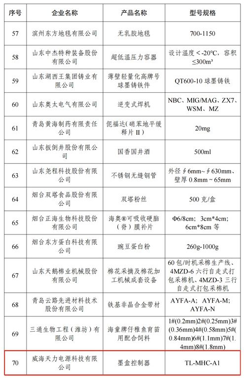 9月23日,山東省工信廳公示了2024年“山東制造·齊魯精品”名單,其中,威海光威復(fù)合材料股份有限公司、山東亙?cè)虏牧瞎煞萦邢薰尽⑵至殖缮剑ㄉ綎|)輪胎有限公司、威海天力電源科技有限公司4家企業(yè)的產(chǎn)品上榜。