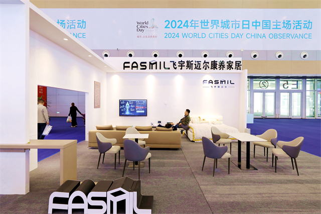 在2024年世界城市日中國主場活動主題展覽上,飛宇斯邁爾康養家居有限公司帶來了多元化的養老產品,為養老生活帶來尊嚴和溫度。