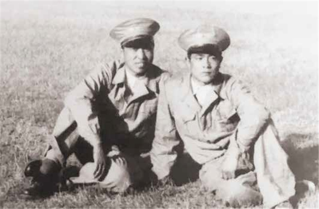 牟敦康與陳亮(左)在天津張貴莊機(jī)場,倆人先后在抗美援朝空戰(zhàn)中犧牲。