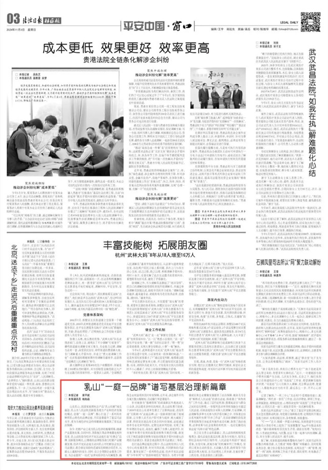 近日,《法治日報》以《乳山“一庭一品牌”譜寫基層治理新篇章》為題,聚焦威海乳山法院創建“一庭一品牌”,提升基層司法服務水平的先進經驗,以下為報道全文: