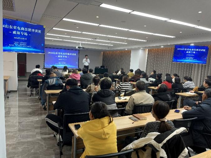 為加快電子商務人才隊伍建設,12月1日,全省電商培訓班威海站活動在威海經區智慧谷服務貿易產業園成功舉辦。本次培訓由威海市商務局、威海市人社局、威海市婦聯、團市委等部門、單位共同組織,吸引了來自全市電商企業、個體經營者、電商愛好者等共計104名代表參加學習。