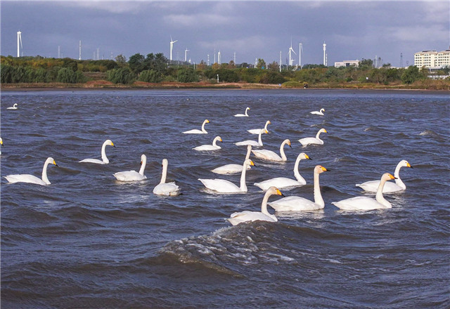 除了美食,威海豐富的濕地資源還為大天鵝提供了充足的活動空間,濕地水域廣闊、水淺灘涂多,能夠容納大量天鵝覓食、棲息。