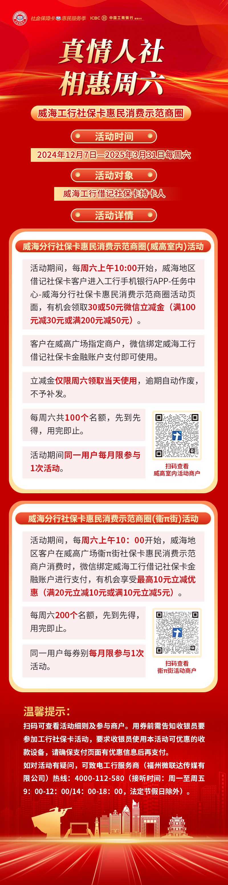 真情人社 相惠周六 | 威海工行社保卡惠民消費示范商圈活動來襲