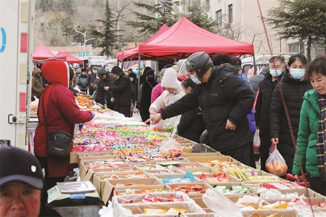 過大年,趕大集。若想要熱鬧煙火氣,必須穿上棉襖去大集上擠一擠。老人們喜歡在集上買一筐冰冰涼的砂糖橘,再稱一兜五顏六色的糖,買一些鮮活蹦跶的魚蝦,款待新年歸來的兒女孫侄。年輕人則多愛尋味,愛大集上蒸騰著熱氣的奶白色羊湯,愛咬一口嘎嘣脆的糖葫蘆,也愛刷過醬汁的炸串和烤得滋滋冒油的雞腿。