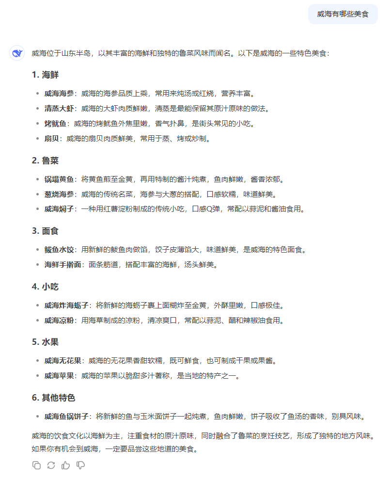 向火爆全網(wǎng)的DeepSeek提問(wèn),它這樣介紹威海……