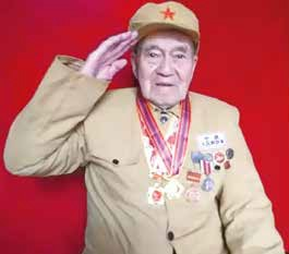 這是1951年夏季的一日,中國人民志愿軍二十七軍政治部一名戰友,把他叫到山洞的外面,在兩樹之間掛起一面國旗,給他拍了這張照片,說是發軍功證用的。就是這張誕生于抗美援朝硝煙彌漫戰場上的照片,留下了他英姿瀟灑的人生風采,承載著他參與“立國之戰”的烽火經歷。