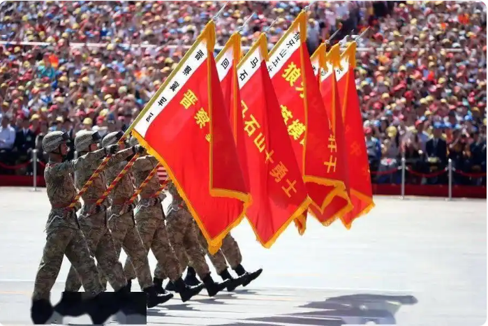 ????????2015年,“馬石山十勇士”旗幟作為抗戰勝利70周年大閱兵第一個英模方隊的旗幟,在天安門前接受了祖國和人民的檢閱。
